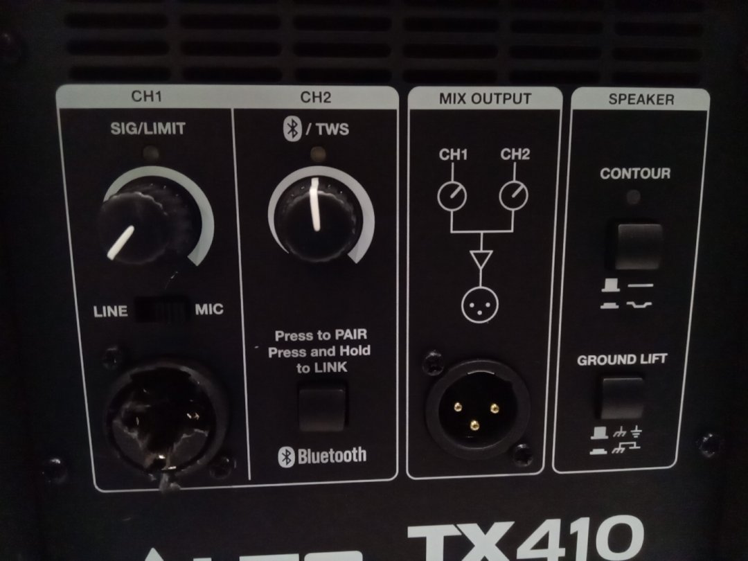 Channel 1 input has been damaged/melted and does not appear operational. Channel 2/Bluetooth was tested and working. Please see photos.