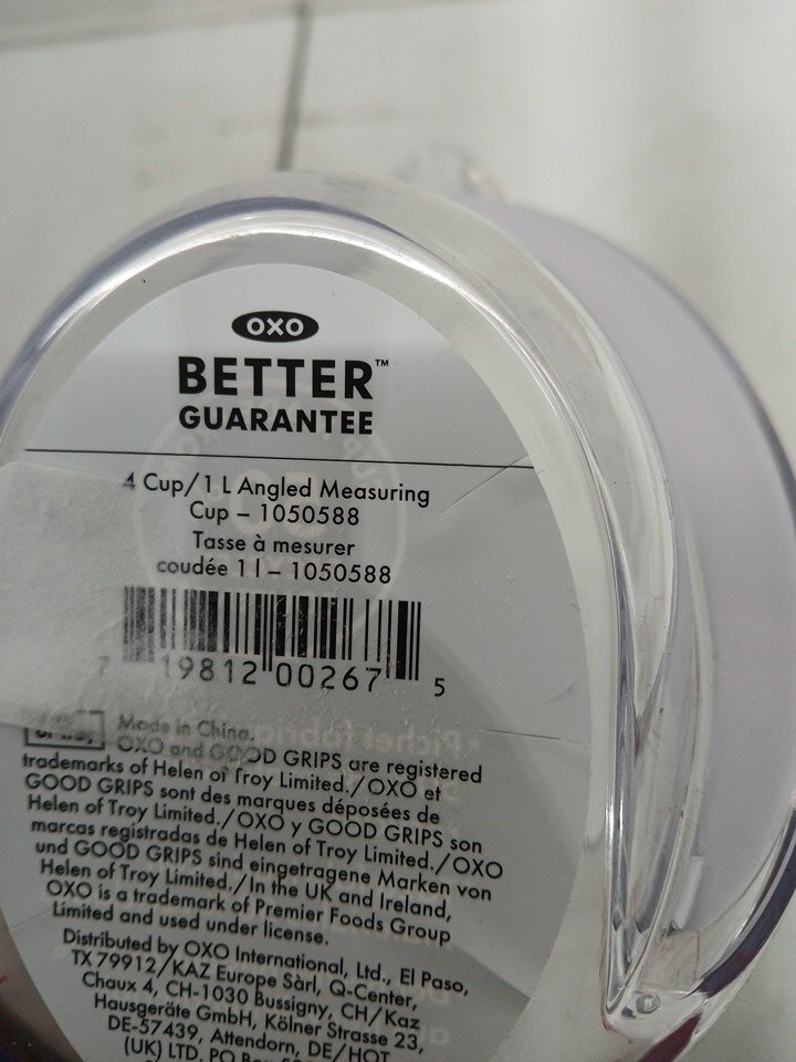 oxo angled measuring cup - 1L (4 cup) - clear/red/black (model: 1050588)