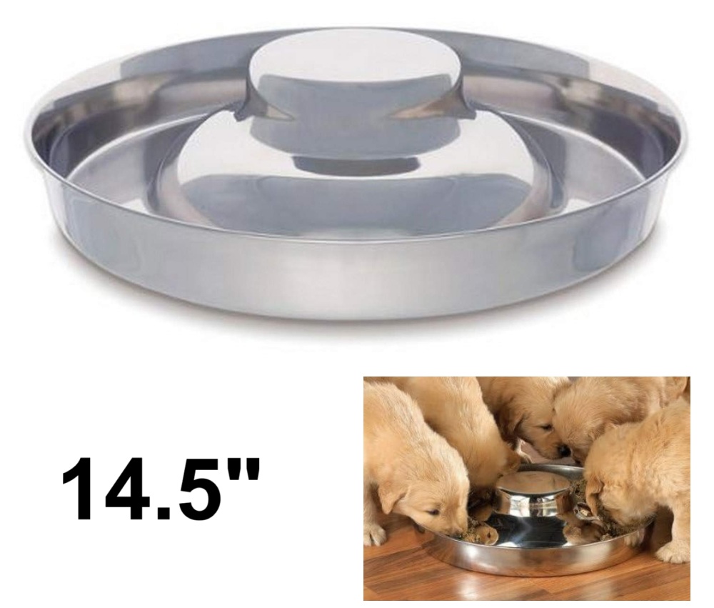 ProSelect Wide Base Stainless Steel Puppy Dish - 14.5" - Steel Silver (Model: ZW01814)