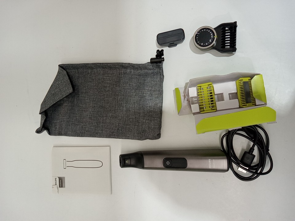 8pc philips oneblade 360 pro wet and dry face and body trimmer with 20 length precision comb (model: qp6552/15)