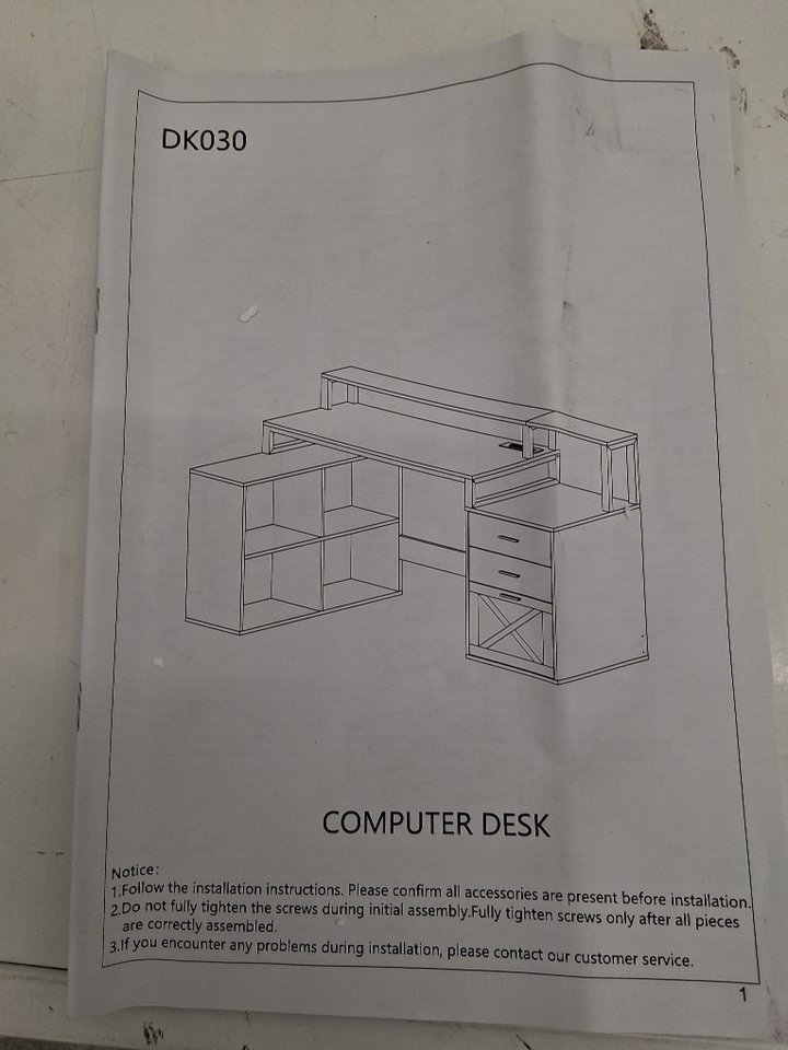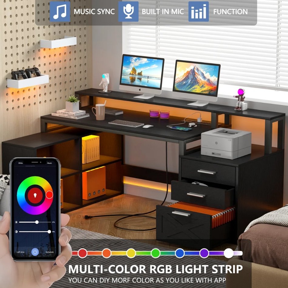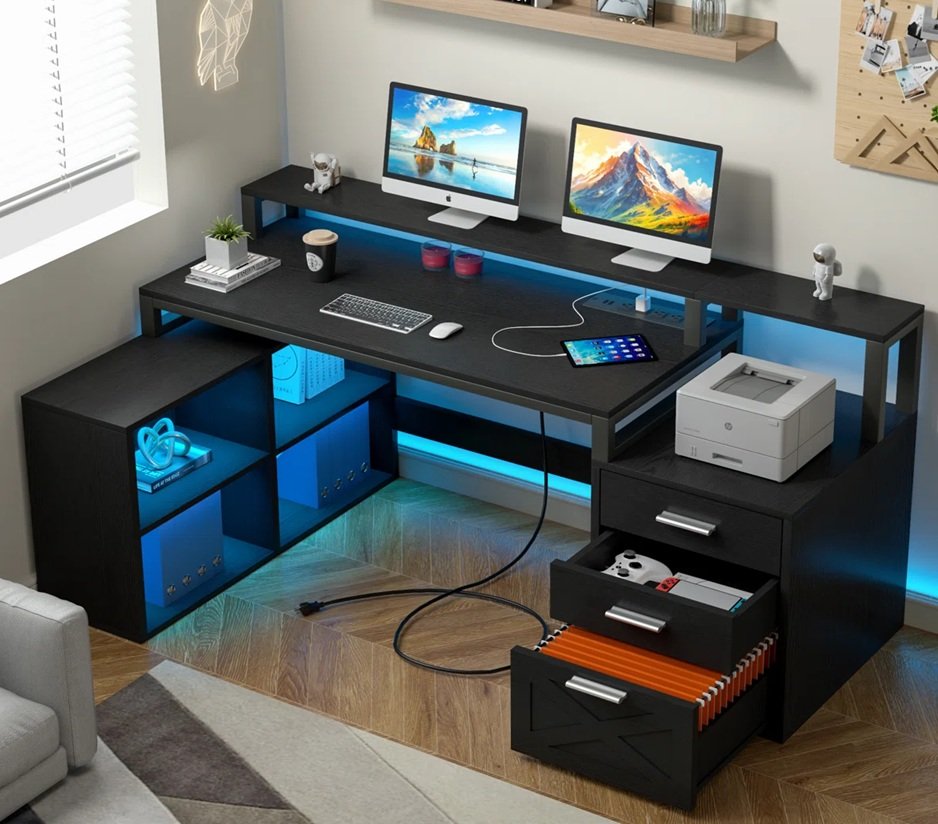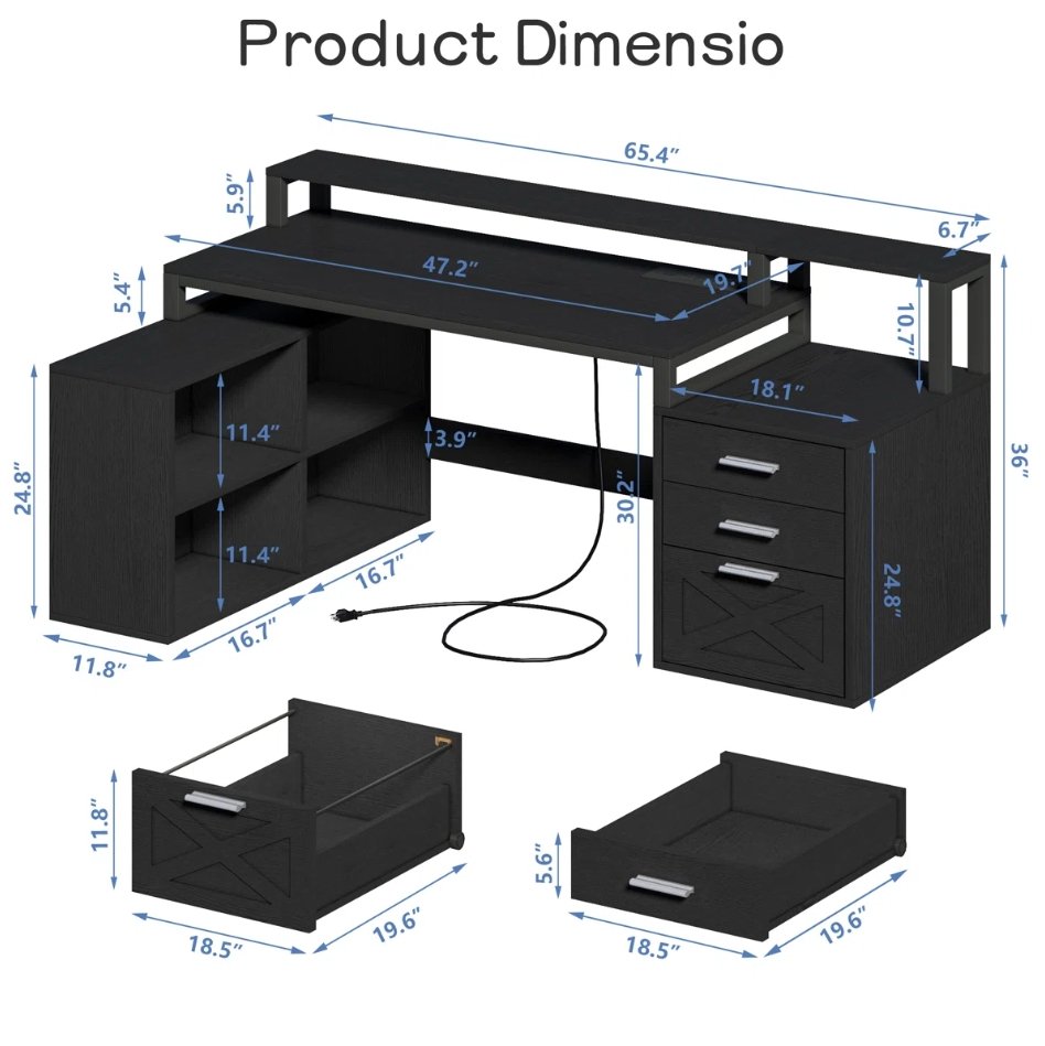 ebern designs L-shaped computer desk with cube shelves and cabinet - 65" x 33" x 36" - black - (model: dk030-b)
