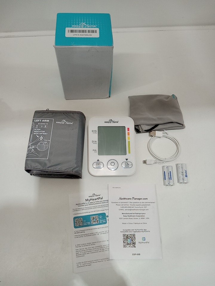 EASY @ HOME LARGE CUFF BLOOD PRESSURE MONITOR WITH BACKLIT LCD DISPLAY - 3 USERS, cuff fits 8.6" to 16.5" arms, BLUETOOTH COMPATIBLE WITH IOS AND ANDROID - WHITE (MODEL: EBP-08B)