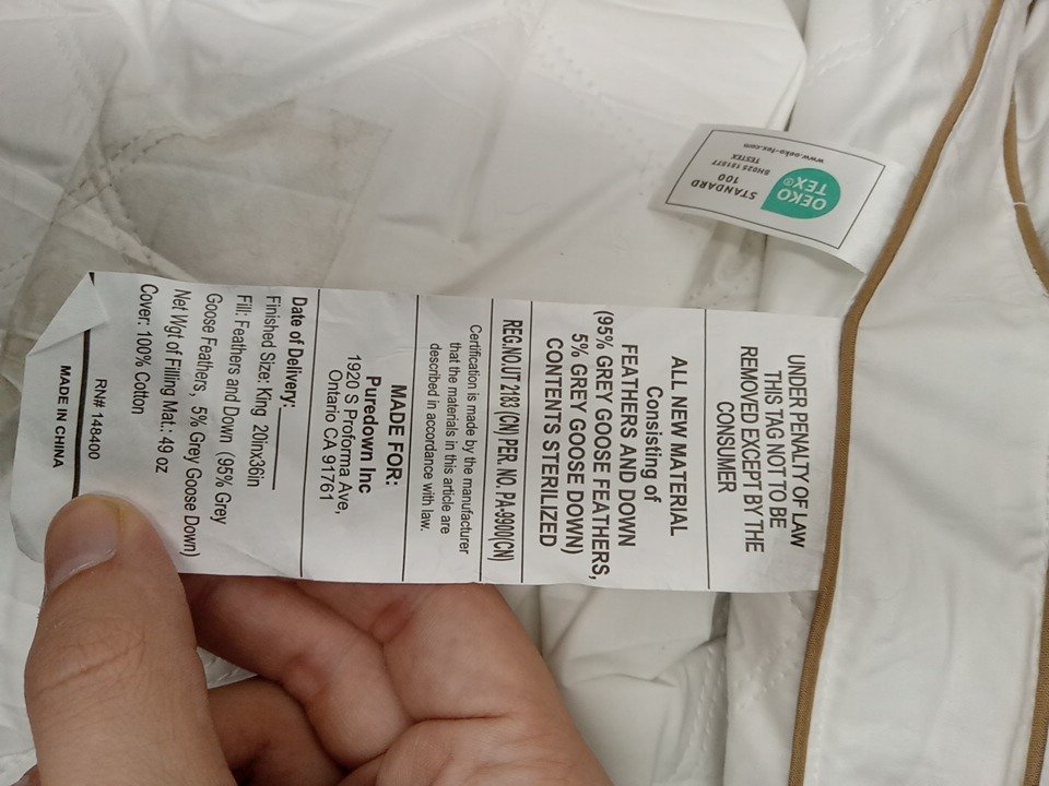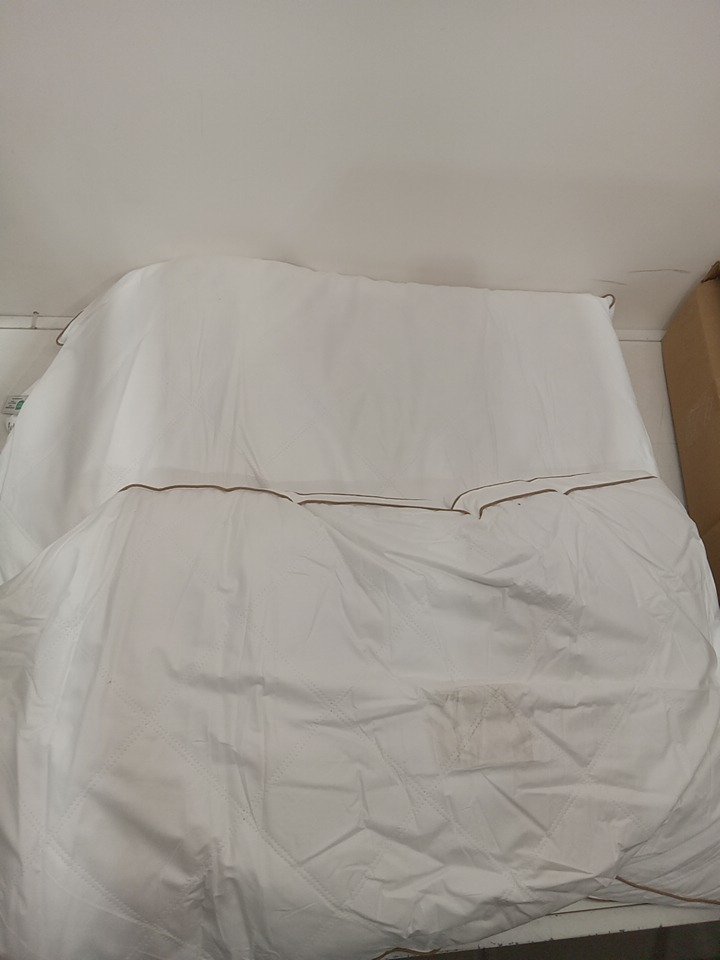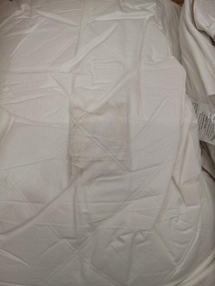 Dirt on the one pillow from how it was packaged. Can likely be cleaned. Has been repackaged into a bag.