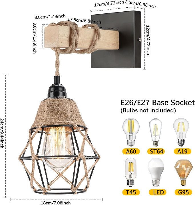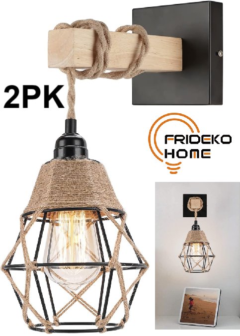 2PK FRIDEKO HOME Farmhouse Wall Light Fixtures - E26/e27 LIGHT BASE SOCKET (bULBS NOT INCLUDED) - BLACK/BROWN