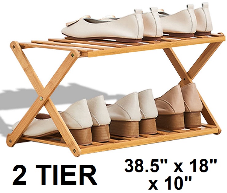 kwude 2 Tier Bamboo Shoe Organizer Rack - 38.5" x 18" x 10" (Model: zxj-182-5)