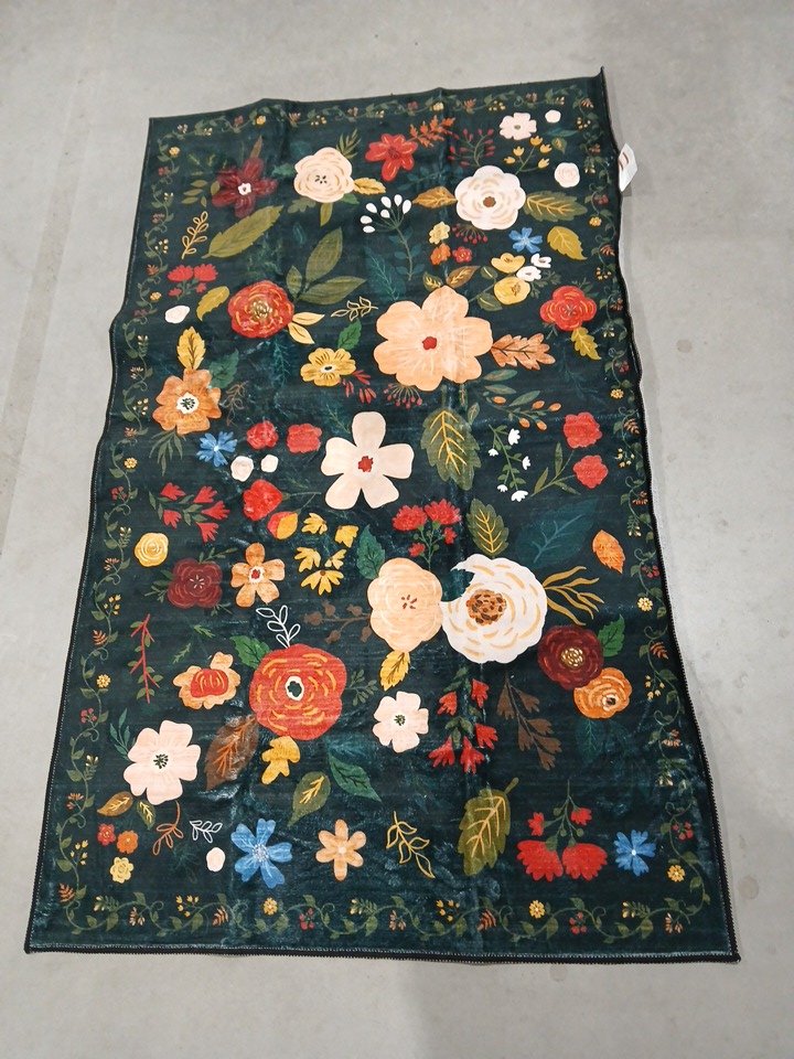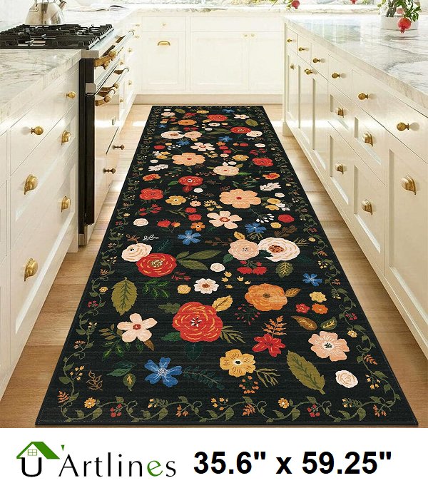 U'Artlines Indoor Non Slip Machine Washable Floral Door Mat/Entrance runner Rug - 35.6" x 59.25" - black green