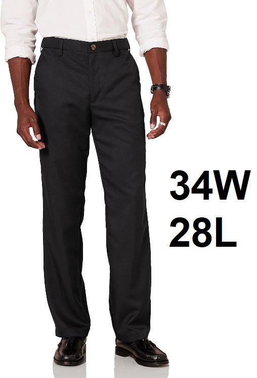 men's amazon essential straight leg dress pant - 34w x 28l - black (style: ae190476)