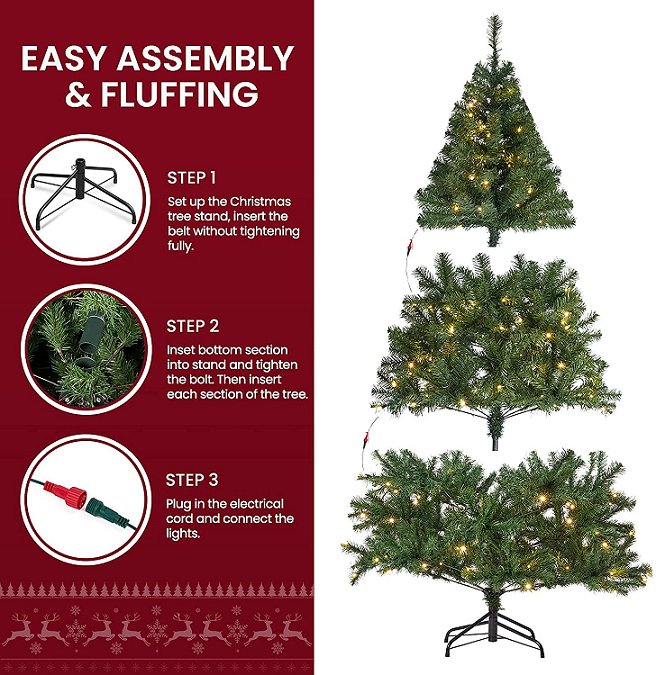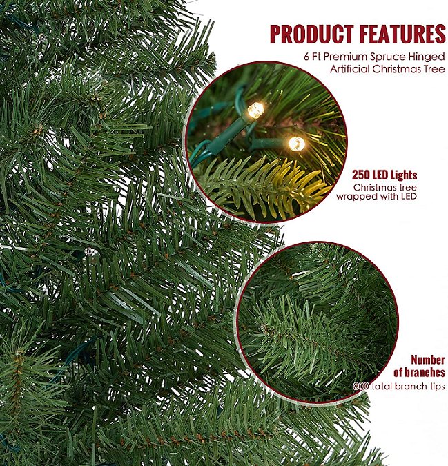 WBHOME ADUSTABLE PREMIUM SPRUCE HINGED ARTIFICIAL CHRISTMAS TREE WITH lights - 5FT - GREEN (MODEL: XMT-L231-50)