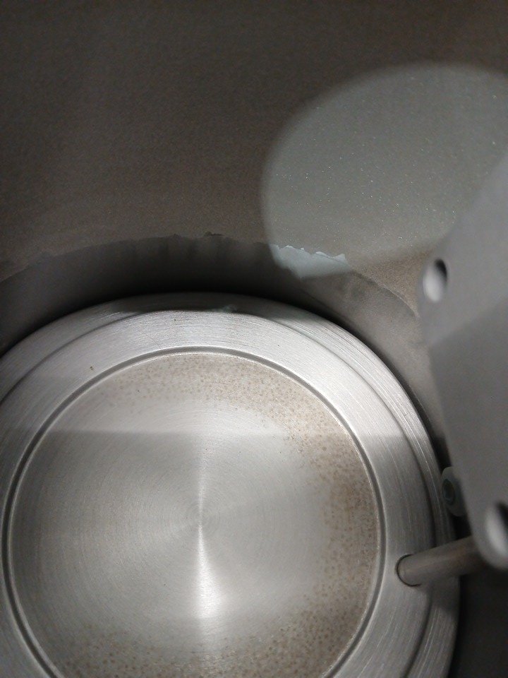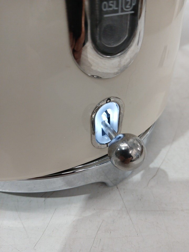 Has some scuffing/residue on the surface and some water residue inside. Tested for power.