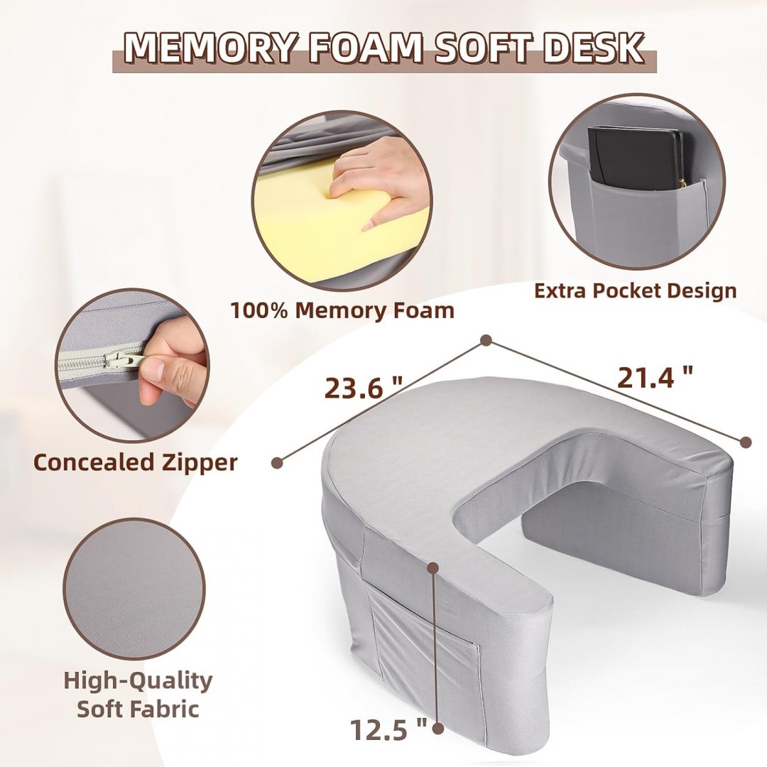 THICKPILLO Lap Gaming Pillow for Laptop & Extra Large Arm Rest - 23.6" x 21.4" x 12.5" - grey