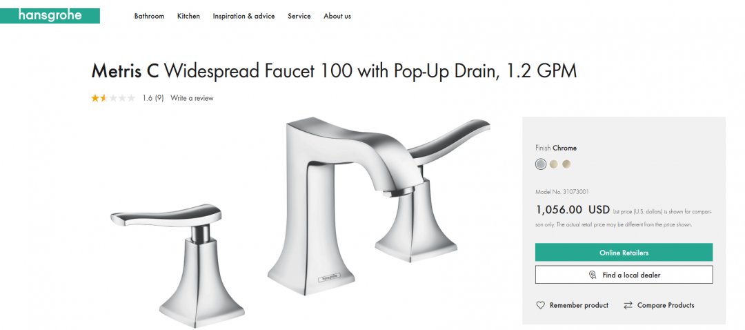 hansgrohe Metris C Widespread Faucet 100 with Pop-Up Drain - 1.2 gpm - stainless steel - ( model: 31073001 )