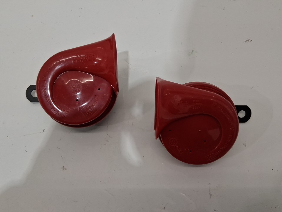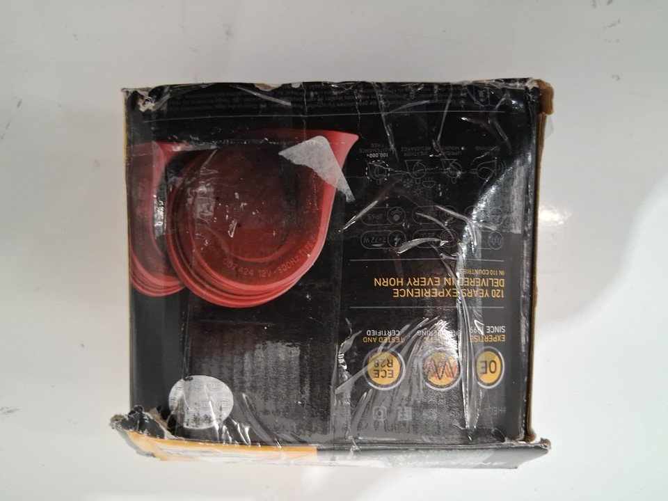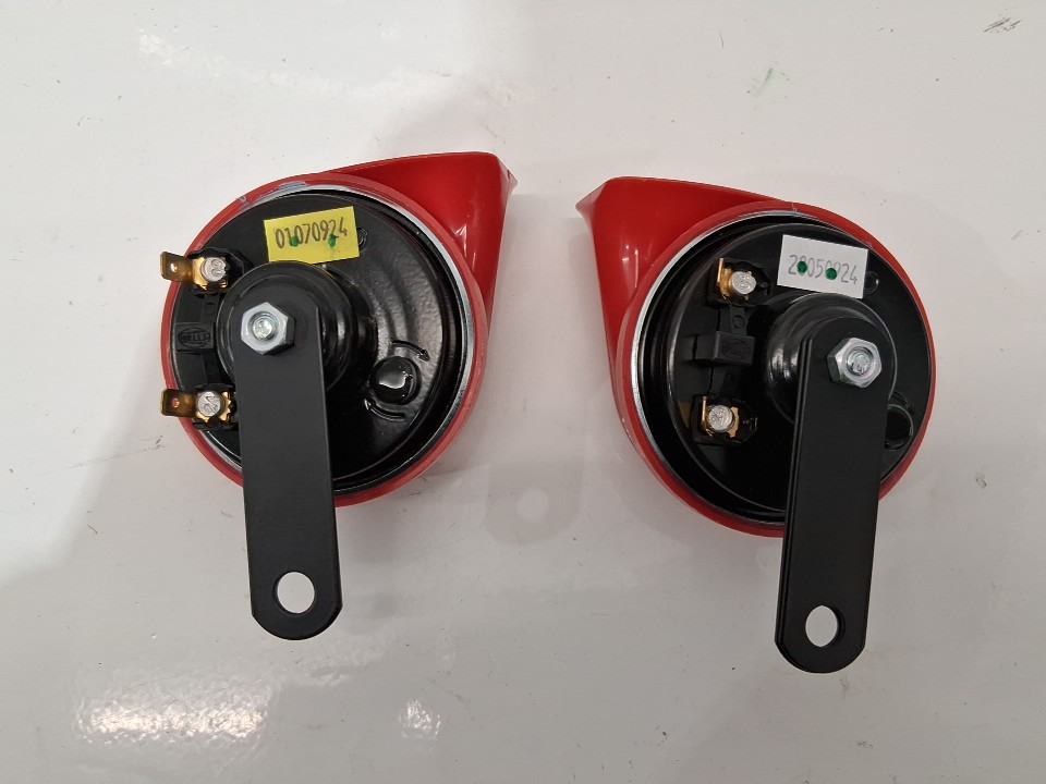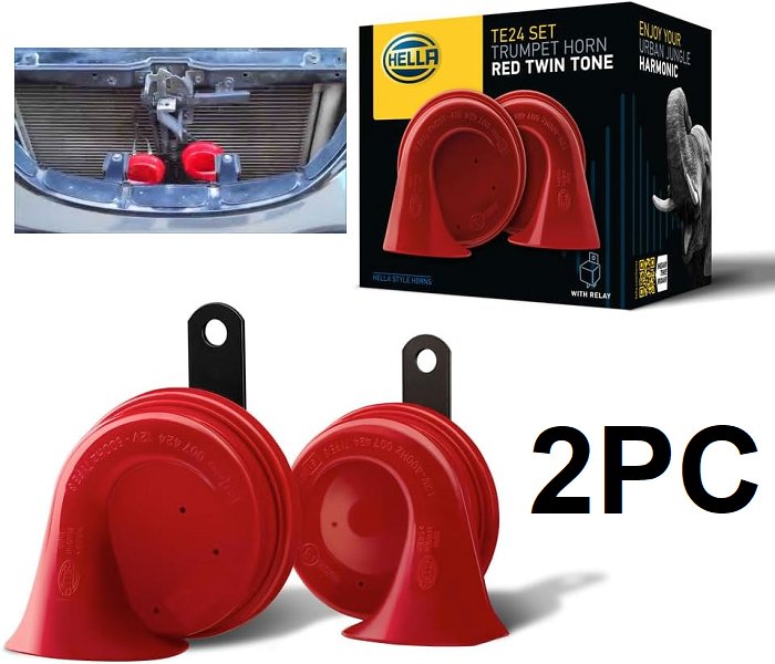 2PC HELLA Twin Trumpet High/Low Tone 12V Horn Kit with Bracket (MODEL: 007424801)
