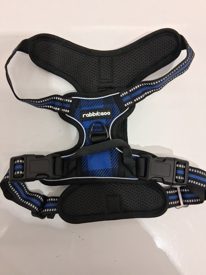 rabbitgoo adjustable no-pull dog harness with 2 leash clips - medium - plaid blue