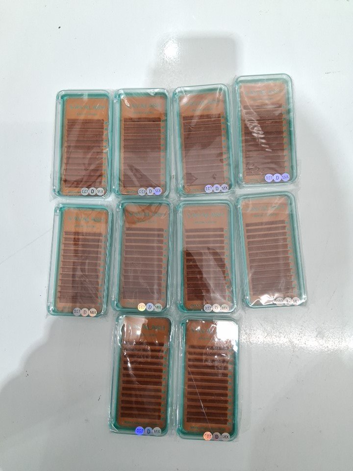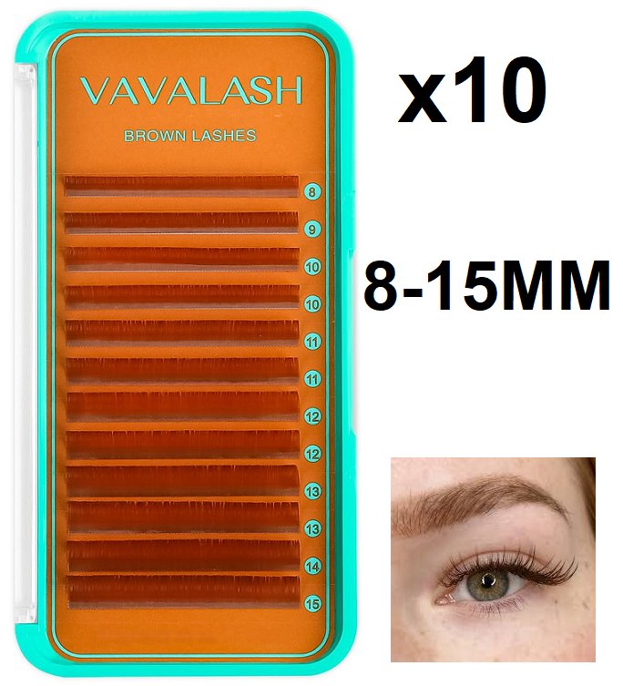 10 VAVALASH D MIX VOLUME EYE LASH EXTENSIONS - 0.07MM, 8-15MM - BROWN