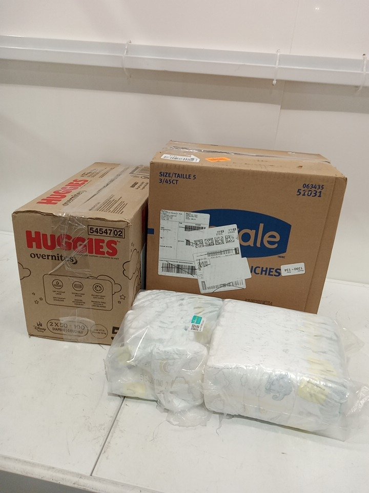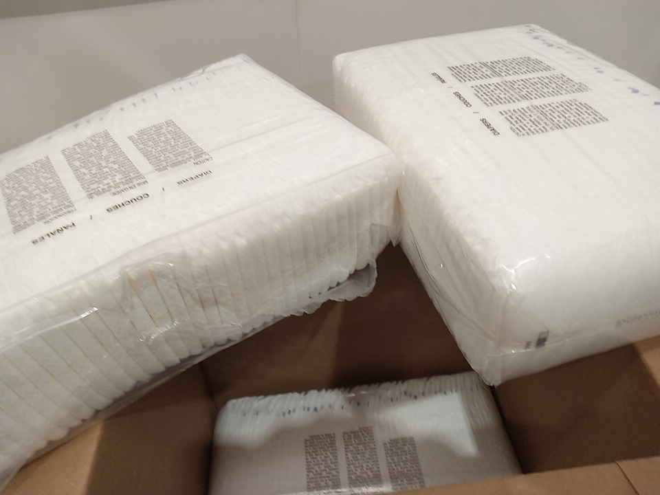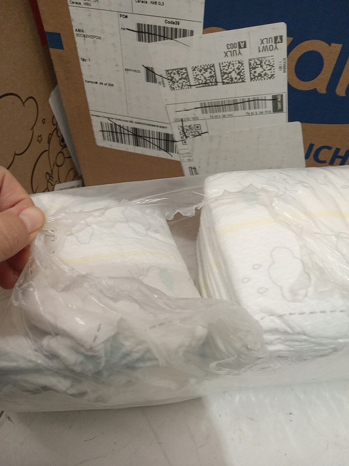 cases are open and sleeves inside are cut open, some diapers are missing