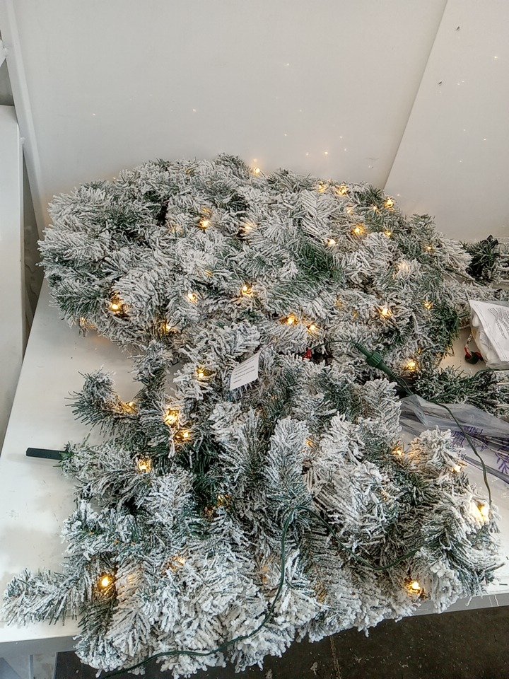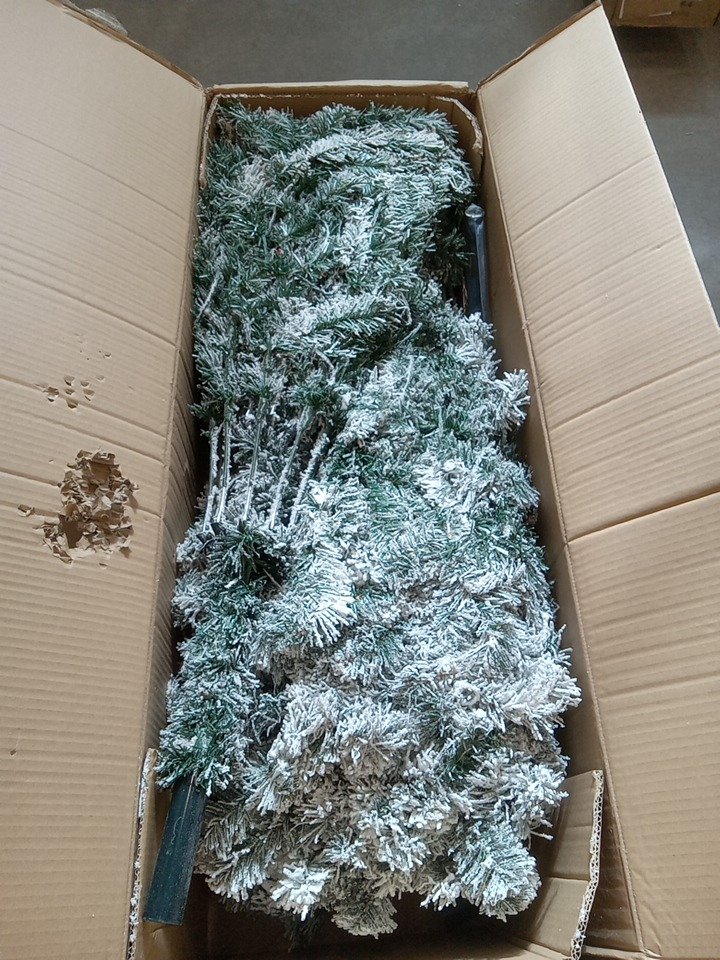Costway Pre-Lit Snow Flocked Hinged Pine Artificial Christmas Tree - 9FT - Green/White (Model: CM22730)