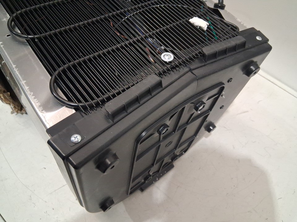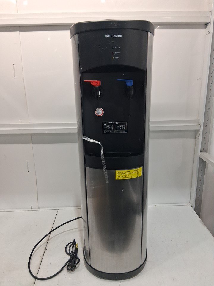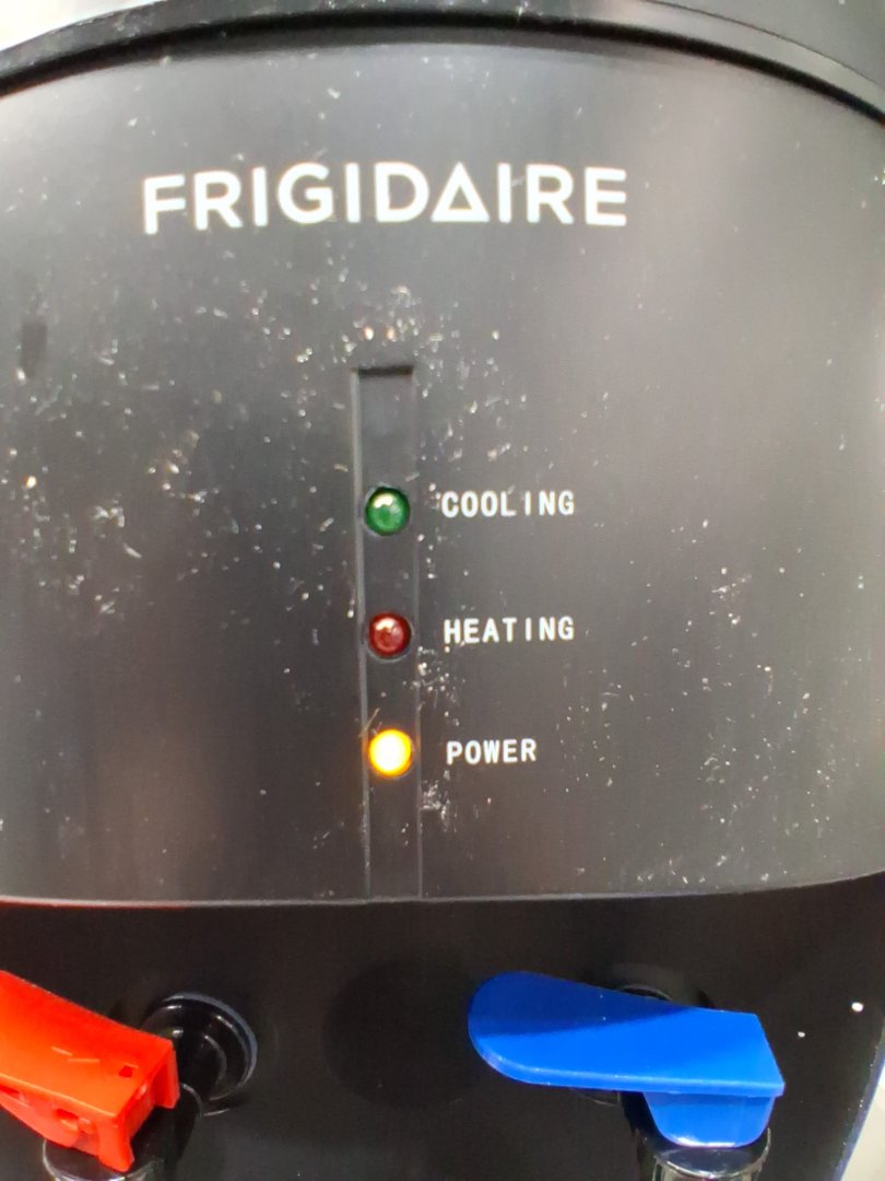 Damage at the bottom of the water cooler. Doesn't appear to affect function. Tested for power, see photos.