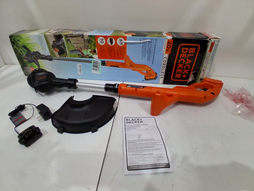 BLACK AND DECKER CORDLESS STRING TRIMMER/EDGER WITH BATTERY CHARGER *TOOL ONLY* - 10" - 20V MAX - BLACK/ORANGE (MODEL: LST201)