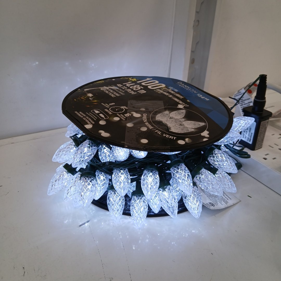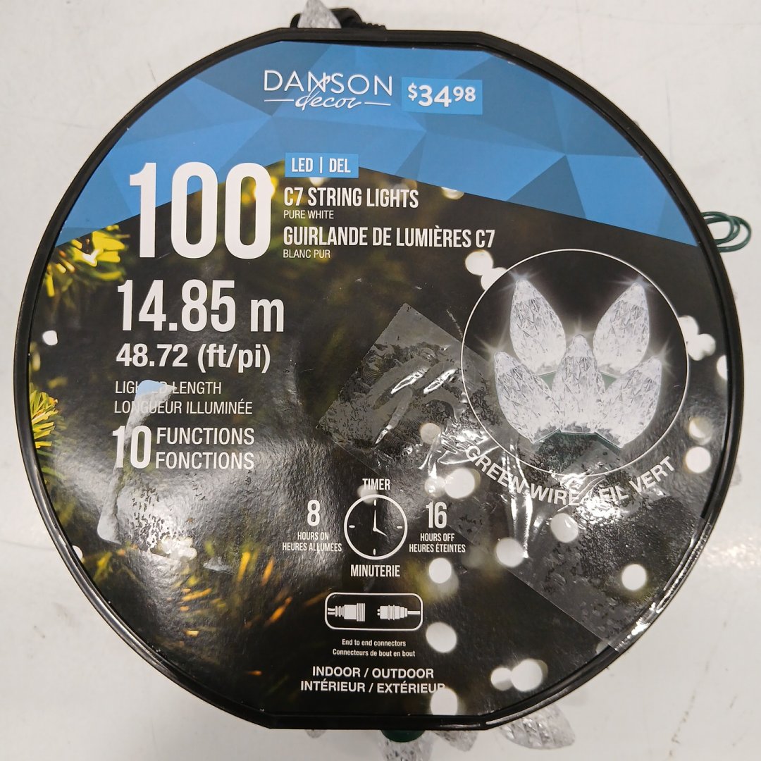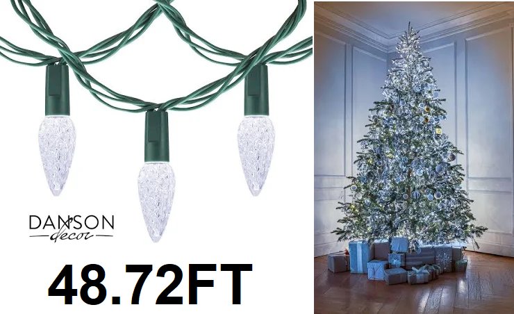 48.7FT DANSON DECOR 100 C7 HOLIDAY STRING LIGHTS - PURE WHITE, WITH GREEN WIRE (MODEL: XWCA81218H)