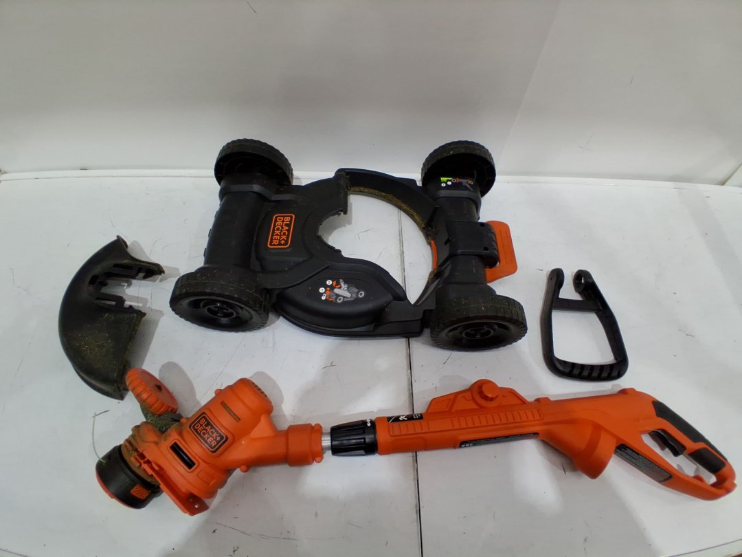 Missing power cord. Trimmer and mower bas have dirt/grass on them. see photos