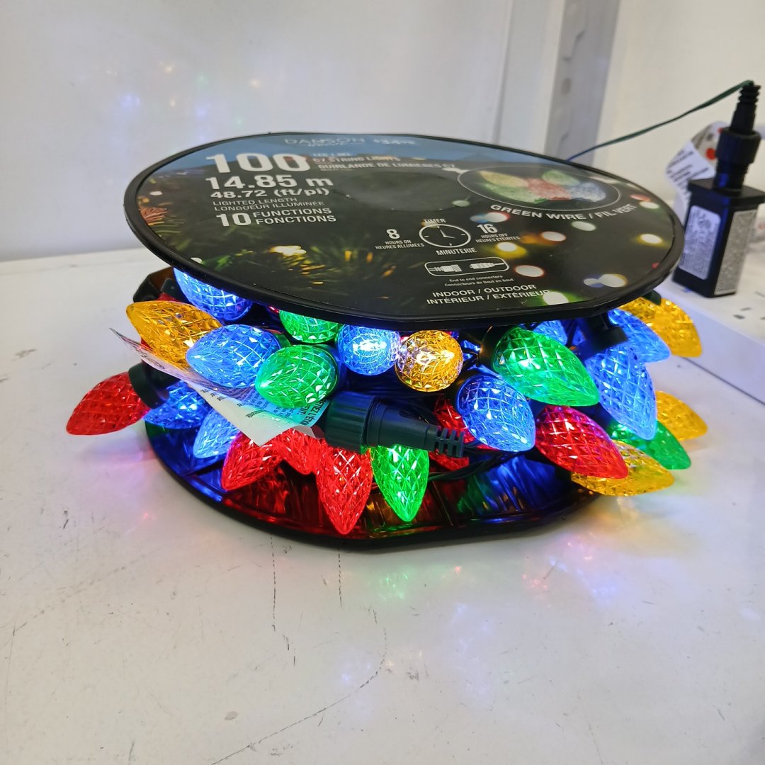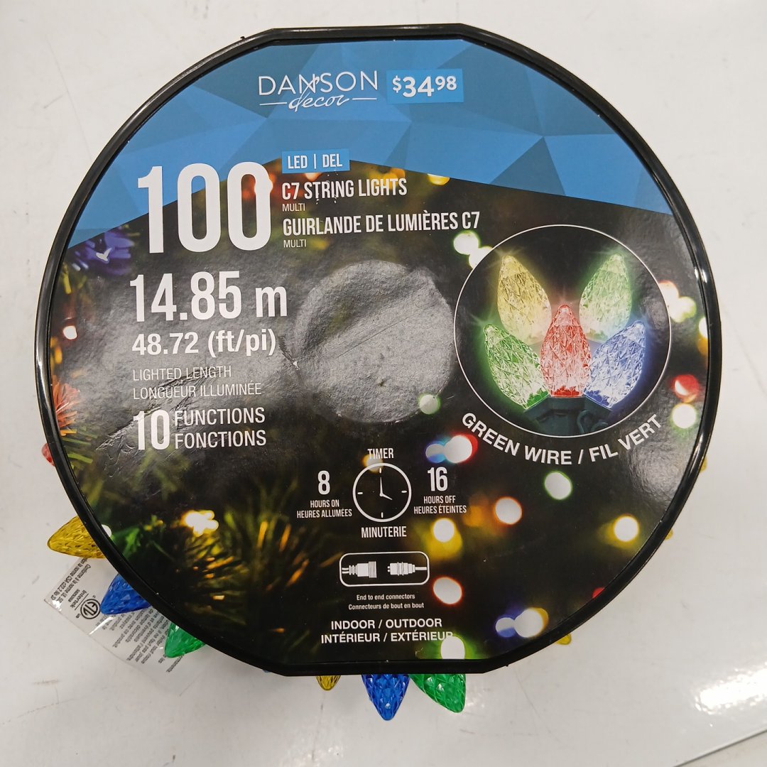 48.7FT DANSON DECOR 100 C7 HOLIDAY STRING LIGHTS - MULTI COLOR, WITH GREEN WIRE (MODEL: XWCA81218D)