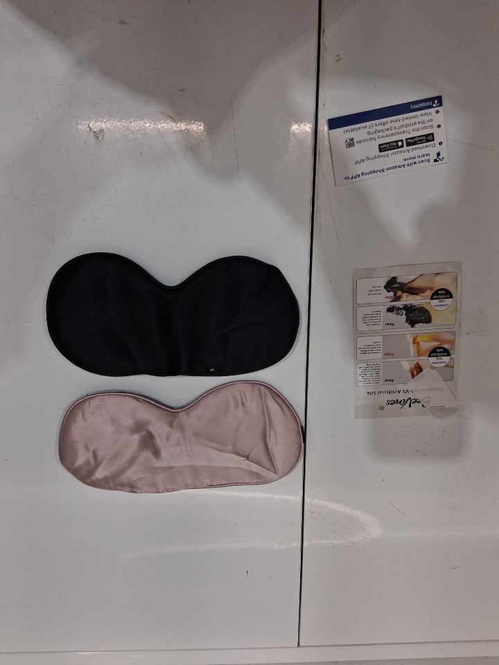 2PK ADULT'S BEEVINES NATURAL PURE SILK SLEEP EYE MASKS WITH ADJUSTABLE STRAPS - OSFM - BLACK/PINK