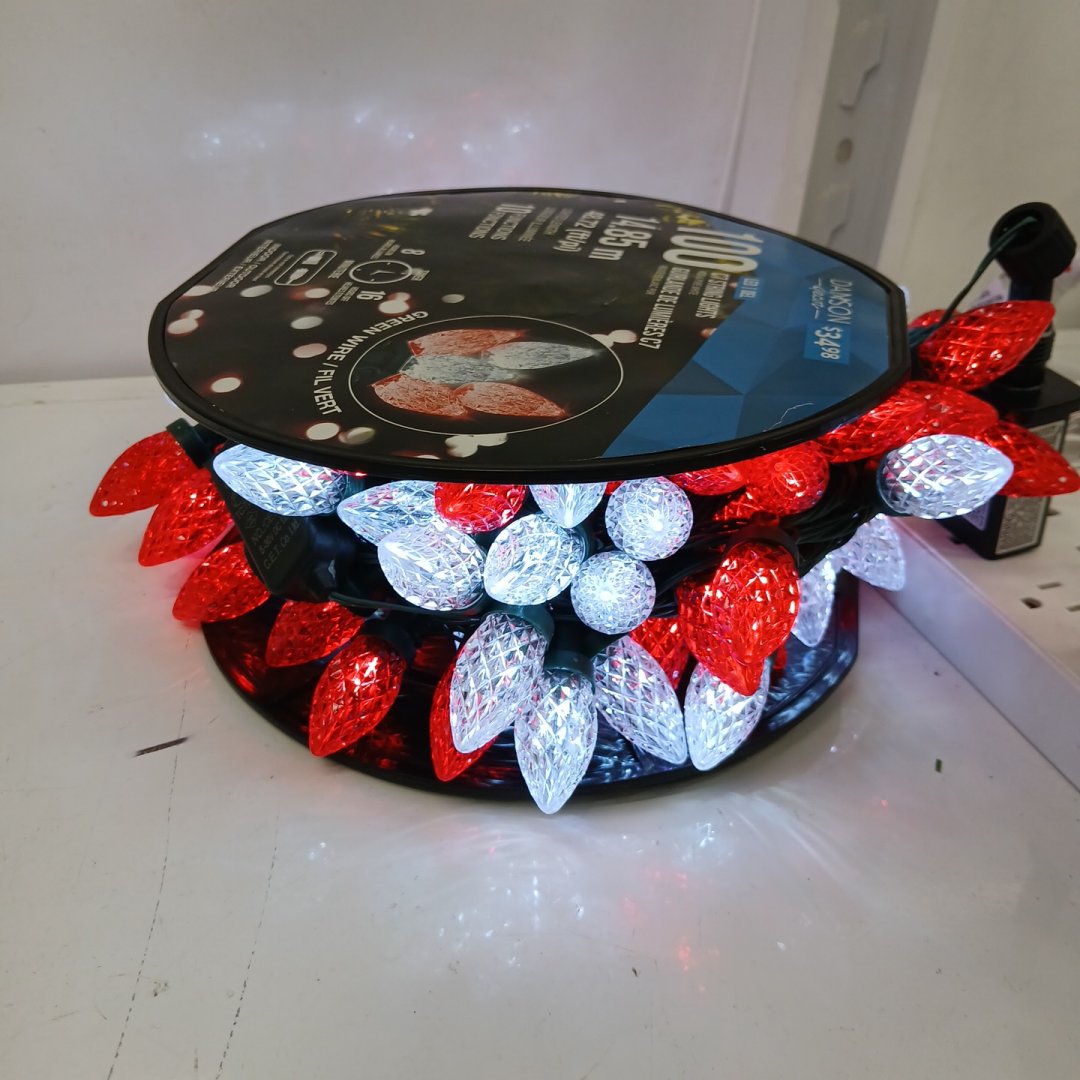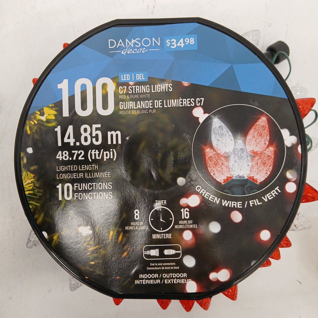 48.7FT DANSON DECOR 100 C7 HOLIDAY STRING LIGHTS - RED AND PURE WHITE , WITH GREEN WIRE (MODEL: XWCA81218I)