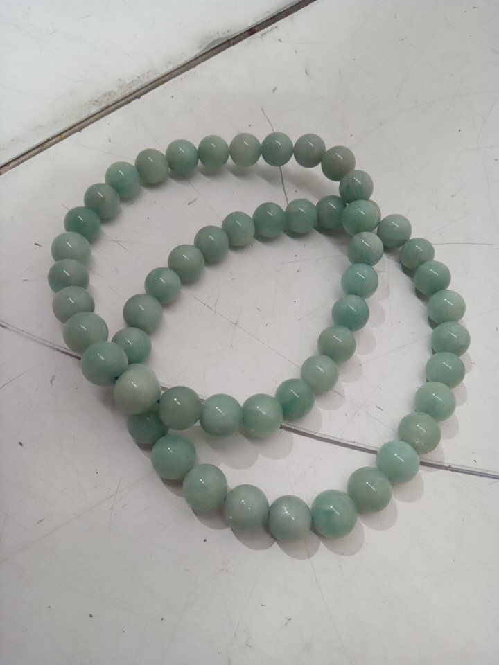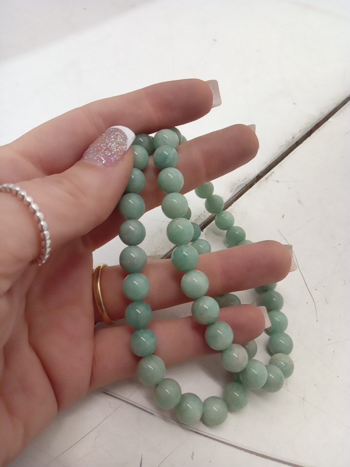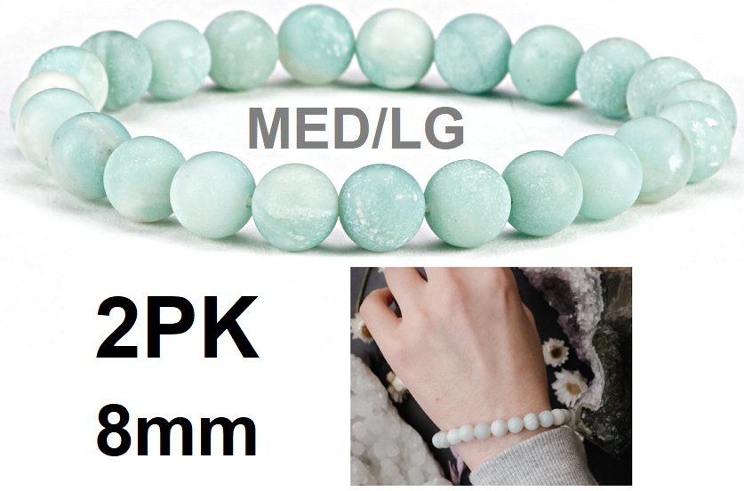2pk unisex level one high quality natural amazonite beaded bracelet - 22 beads in each bracelet/8mm each bead - stretchy (medium -large)