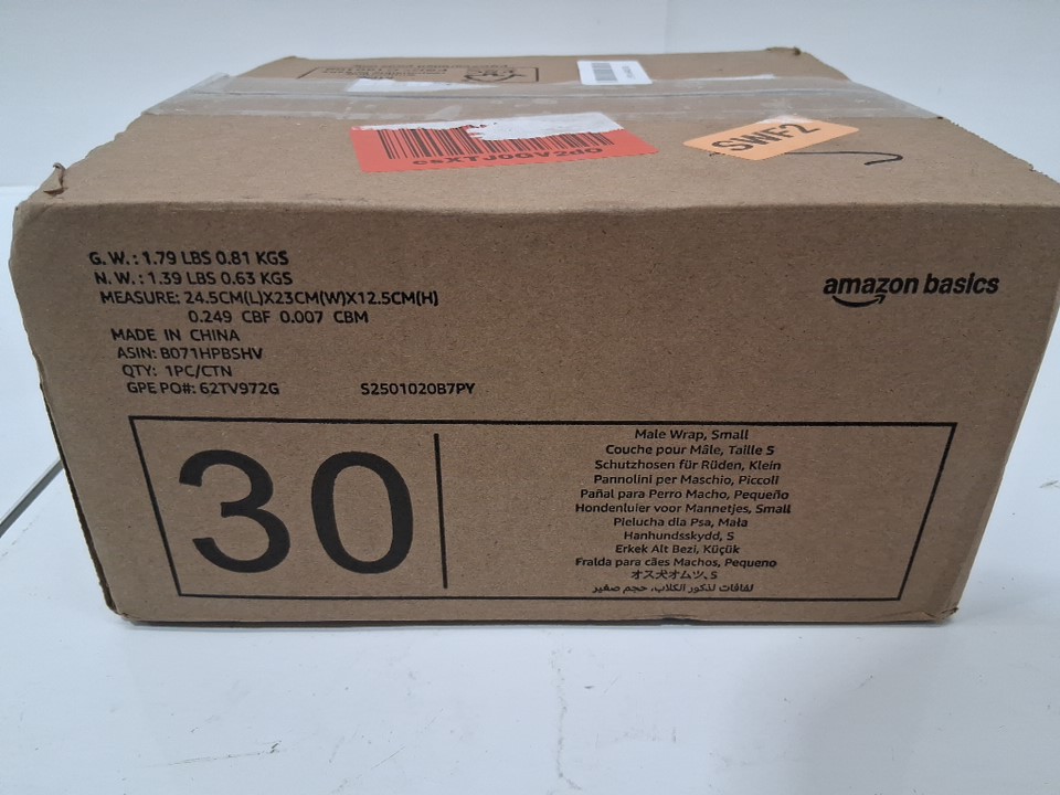 30PK AMAZON BASICS MALE DOG WRAPS DISPOSABLE DIAPERS - SMALL- WHITE