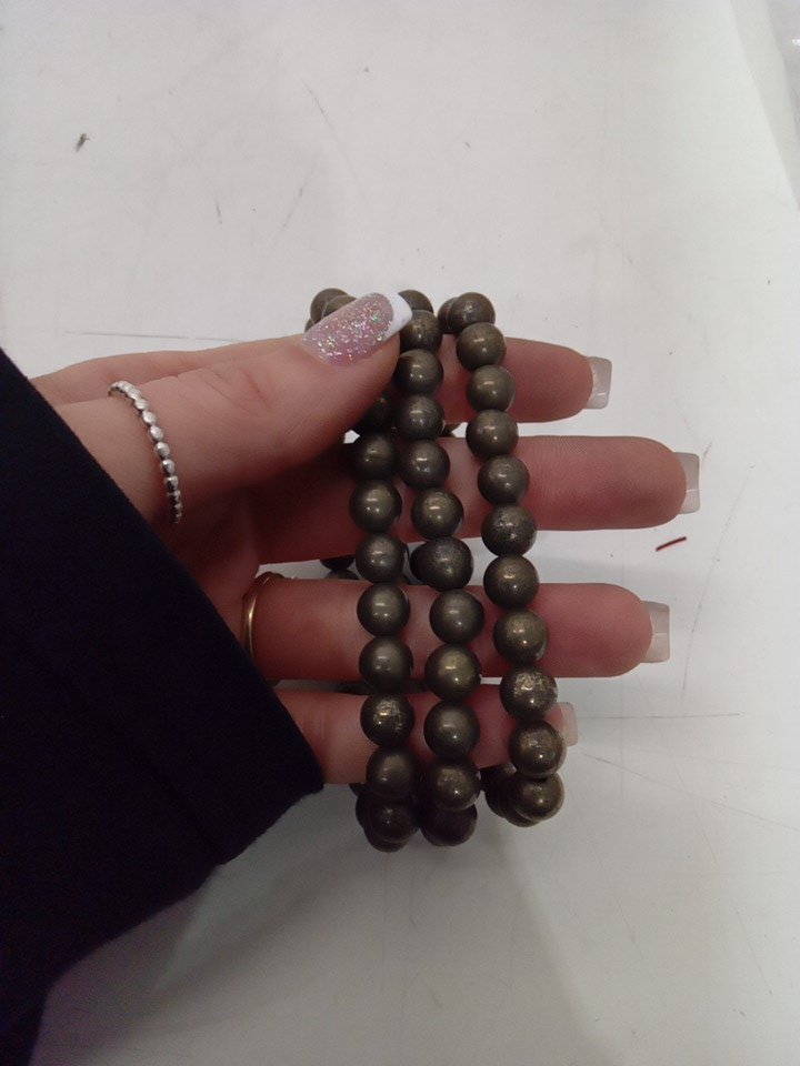 3pk unisex natural pyrite beaded bracelet - 26 beads in each bracelet/8mm each bead - stretchy (medium -large)