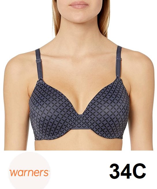 womens warners This is Not a Bra™ Cushioned Underwire Lightly Lined T-shirt Bra - 34c - grey/blue/black (style:1593)