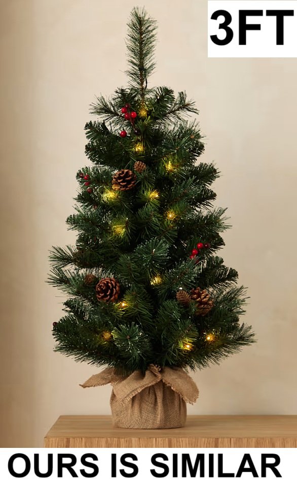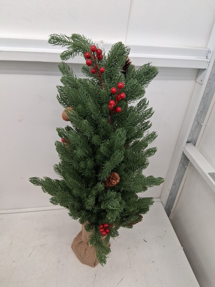 pre-lit christmas tree with berries and pines - 3ft - green