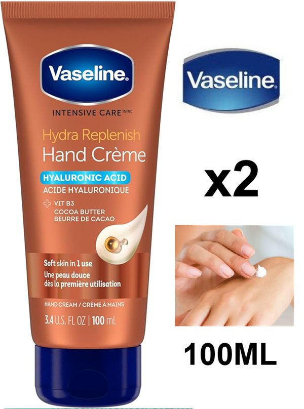 2 Vaseline Intensive Care Hand Cream moisturizer for dry skin with hyaluronic acid vitamin B3 and cocoa butter - 100ML EACH
