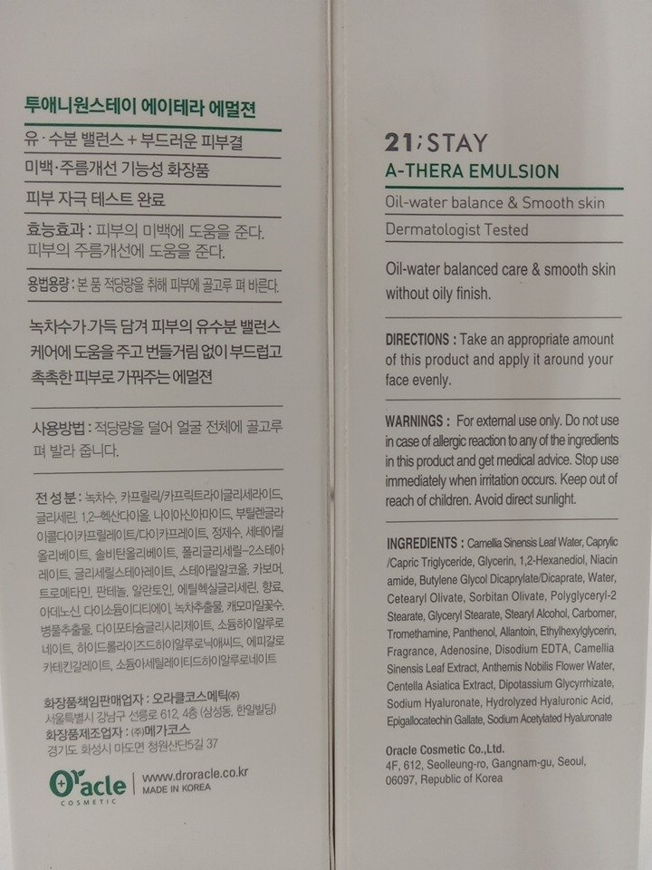 2 DR.ORACLE 21;STAY A-THERA EMULSION - Oil-water balanced care & smooth skin without oily finish - 120ML