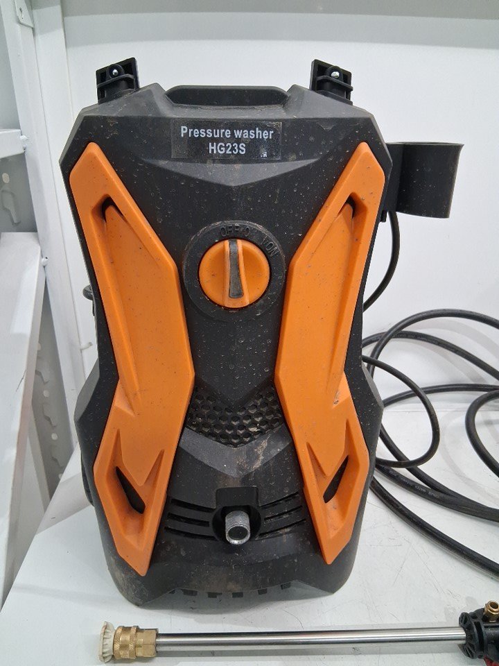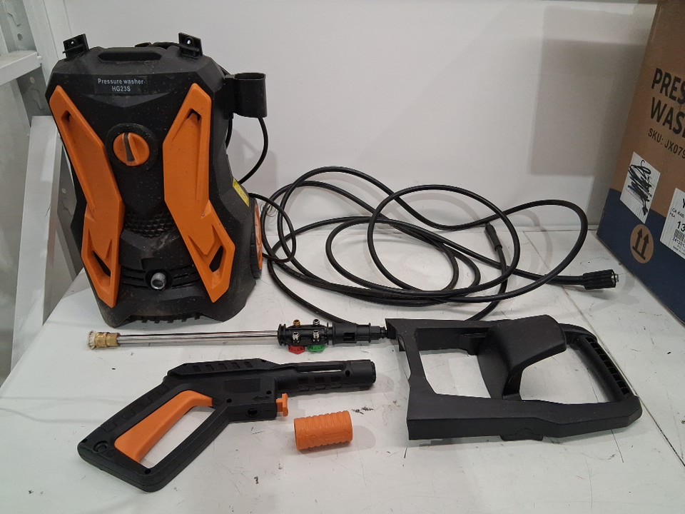 Tested for power. Please note the pressure washer shows signs of previous use with dirt smudges and water marks around the washer, see photos.