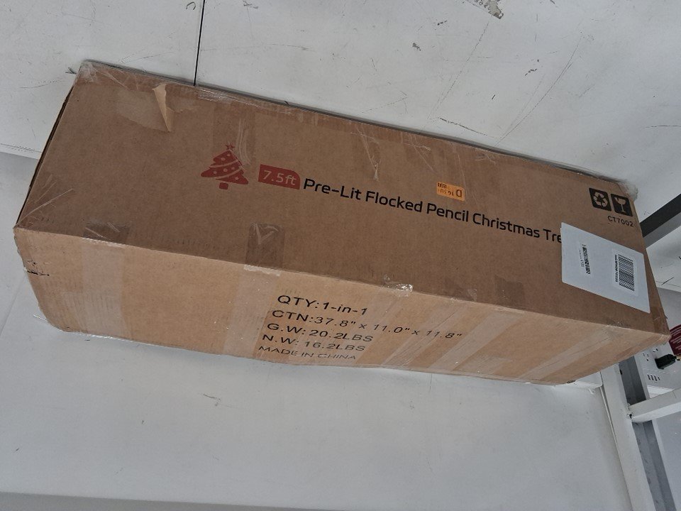 pre-lit flocked pencil christmas tree - 7.5FT - GREEN