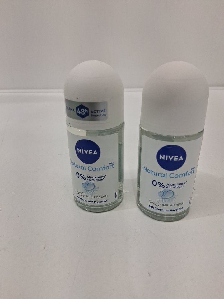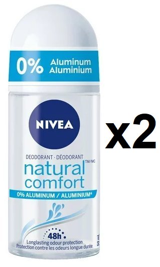2 NIVEA NATURAL COMFORT 0% ALUMINUM ROLL ON DEODORANT - 50ML EACH