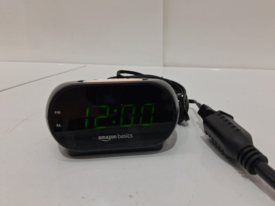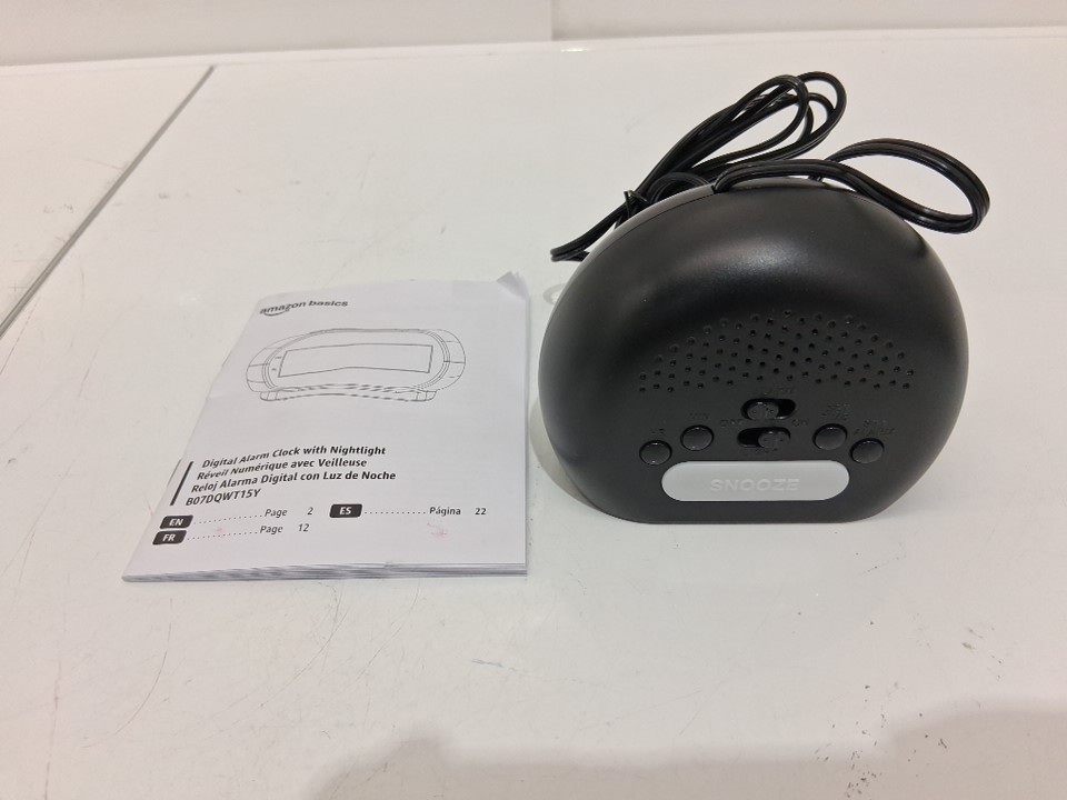 AMAZONBASICS Small DIGITAL led display ALARM CLOCK WITH NIGHTLIGHT & BATTERY BACKUP - 4.5" X 2.4"- black (model: b07dqwt15y)