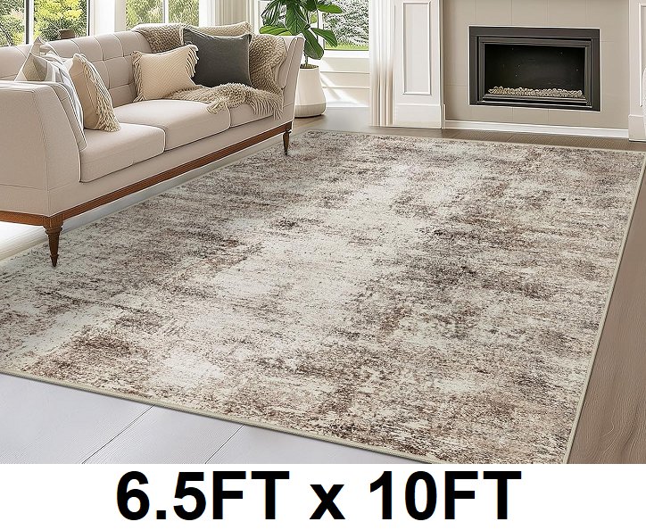Abstract Area Rug with non-slip backing - 6.5ft x 10ft - light brown/white