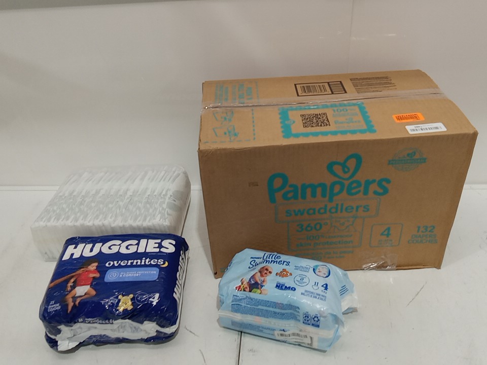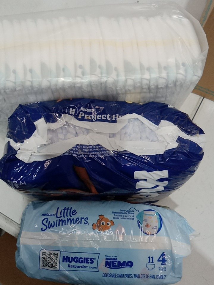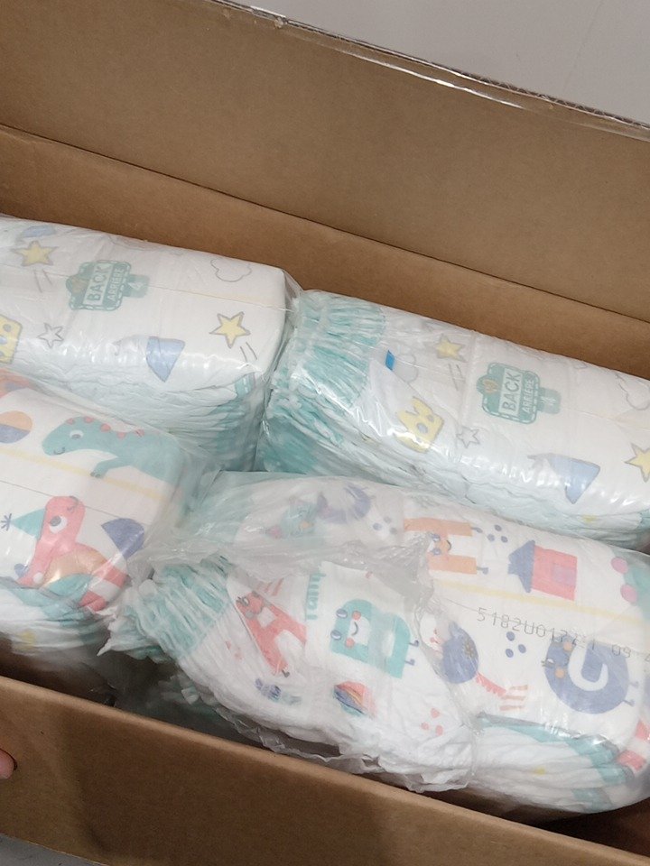 cases are open and sleeves inside are cut open but appear to be all accounted for, some packages are open and diapers are missing