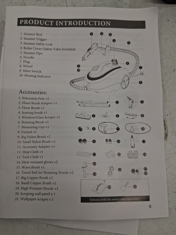 The item ha water marks indicates previous use, also it is missing measuring cup and funnel. Please refer to last photo. Tested for basic power only.
