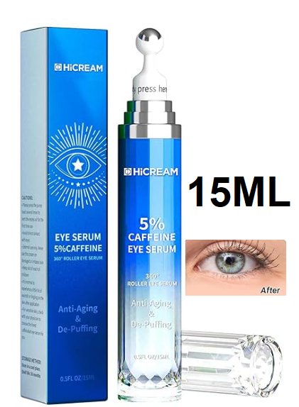 Hicream Eye SERUM With 360 Roller Massage Ball For Puffy, Fine Lines, Dark Circles And Wrinkles - 15ML