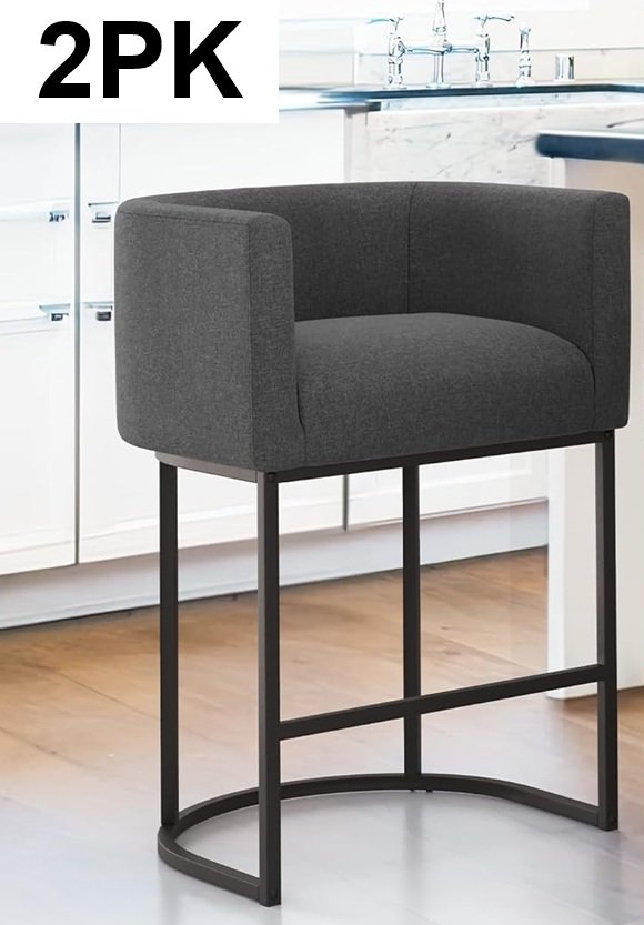2PK MODERN BARREL COUNTER STOOLS - 34" x 23" - CARBON GREY - (MODEL: DMT-7-881CB)
