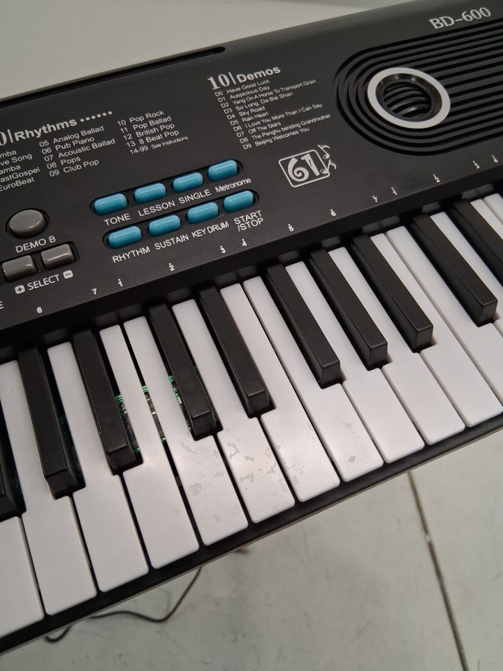 The item has light stains indicates previous use, also has missing power adapter and mic. Tested for power and all keys.