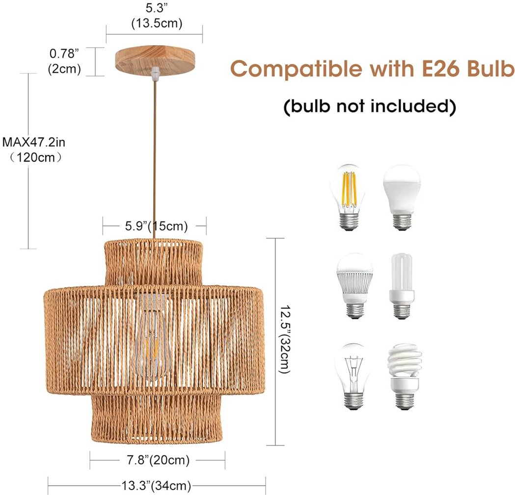 Adjustable Foldable boho Basket Light Fixture - 13" - brown