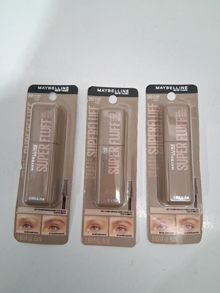 3 maybelline new york super fluff brow mousse for soft full eyebrows - (250) blonde - 5ml/each