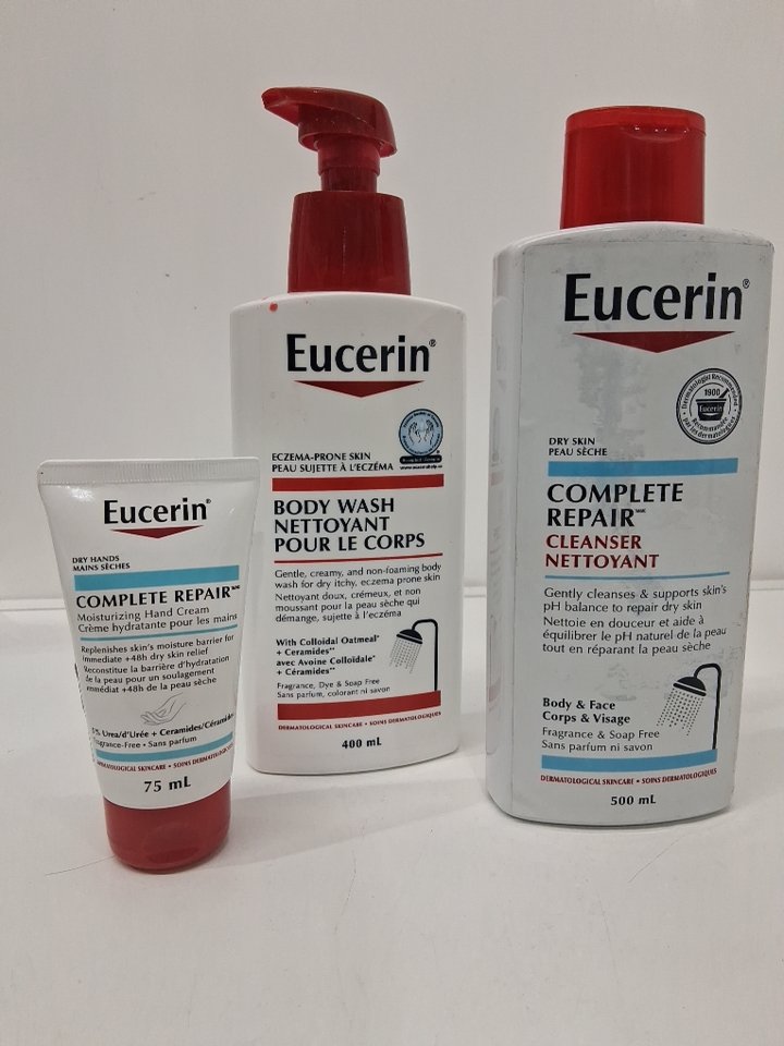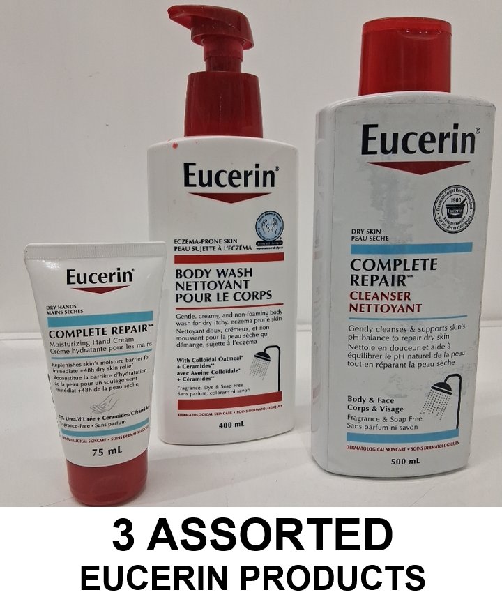 3 ASSORTED EUCERIN PRODUCTS - ASSORTED SIZES AND TYPES