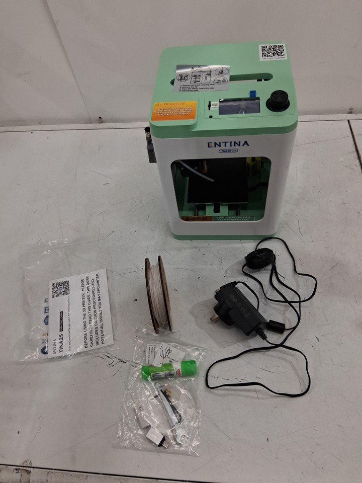 entina tina 2s fully assembled mini desktop 3d printer with wi-fi cloud printing, auto leveling, smart control & heated spring steel build plate - white/mint (model: tina2s)
