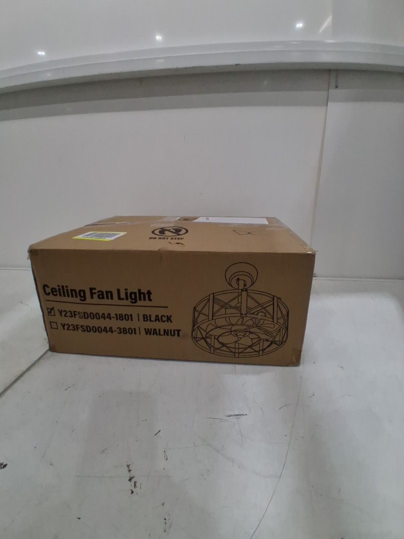 indoor outdoor x-cage small ceiling fan with light sockets and remote - 16" - Black (Model: y23fsd0044-1801ac)