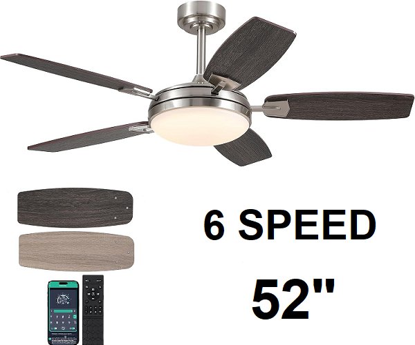 Madshne Noiseless LED 6 speed ceiling fan with light - 52" - Sand Nickel
